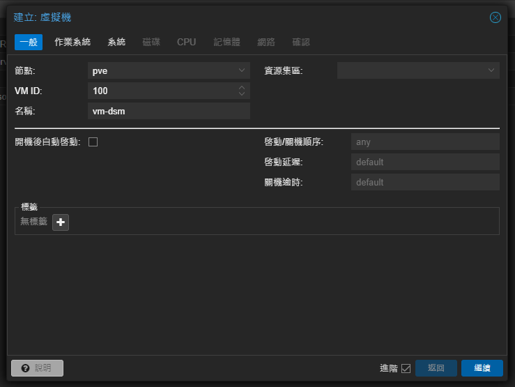 3.1. 一般設定,指定 VM ID 並記住,之後加入引導映像檔時需要指定