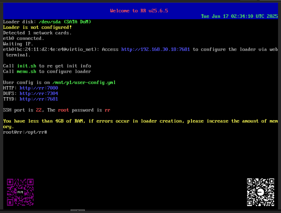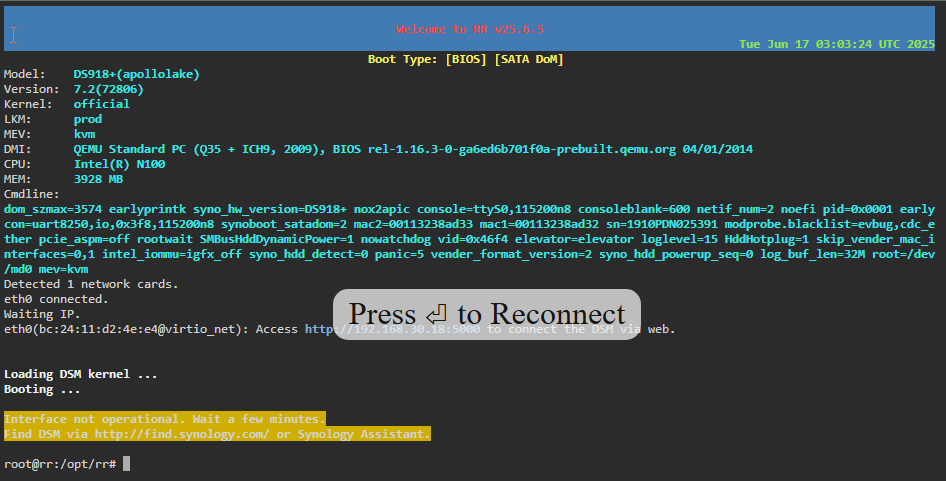 啟動引導,待核心載入完成,即可透過連結進入 DSM 設定介面(http://192.168.30.100:5000)
