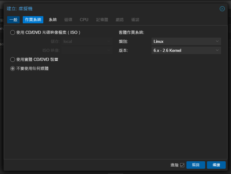 3.2. 作業系統設定,不要使用任何媒體,之後使用 RR 映像檔,引導開機