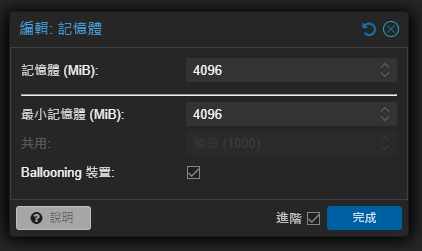 3.6. 記憶體設定,先設定為 4G 安裝完成後再依照宿主機的資源設定