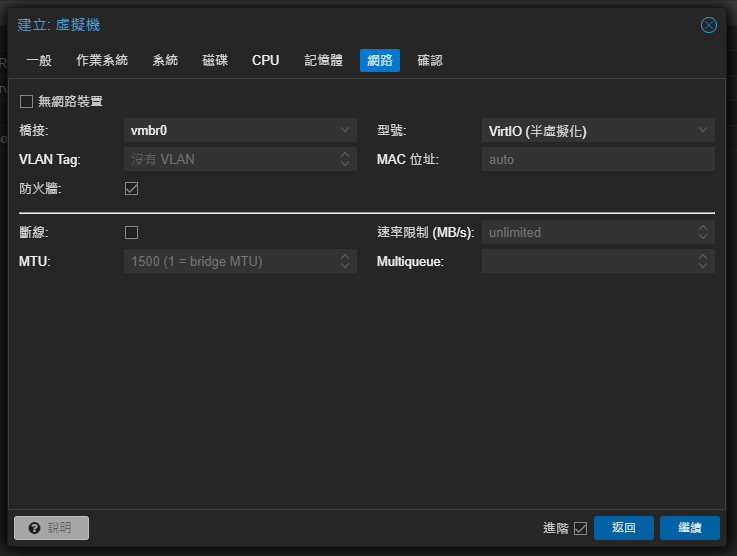 3.7. 網路設定,選擇 VirtIO 或 Intel E1000 的效能最好